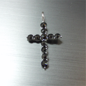 ブラックダイヤモンドのクロスペンダントをカスタマイズです。それぞれの石のサイドにダイヤを配置して一気にボリューム感アップのオリジナルペンダントに変身しました。