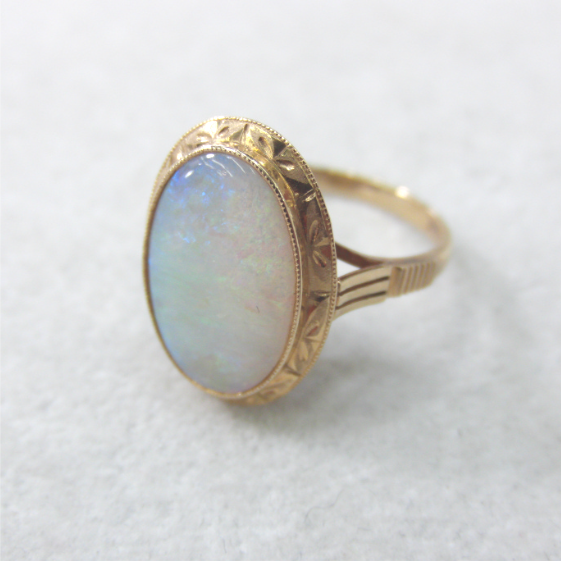 思い出のたくさん詰まったオパールリング。石が大きいので普段使いに不向きでした。 腕を切って加工したカンタン加工でペンダントに早変わり。アンティーク調で素敵です。