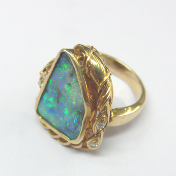 20年前にオーダーで作られたというボルダーオパールのリング。かなり大きいため最近はあまりお着けにならないということ。腕を加工したカンタン加工で素敵なペンダントに変身しました。