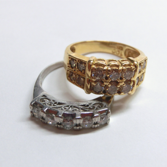 【実例298】リング二本からストレートの三連ダイヤリングにリフォーム
