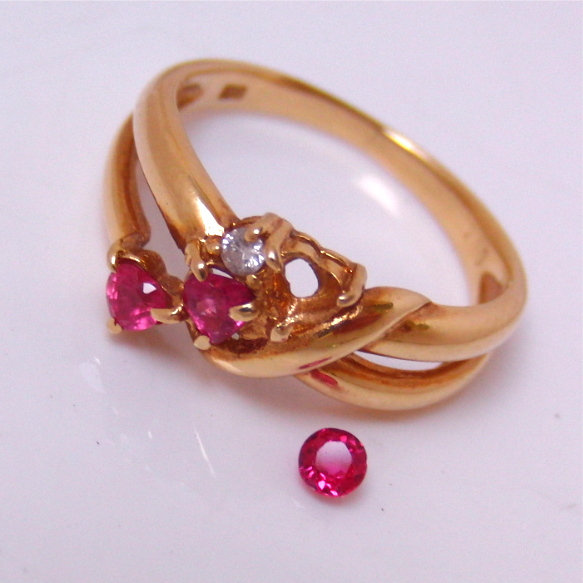 ルビーのリングの石が1石外れてしまったので石留め加工をしました。