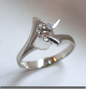 昔のデザインの立爪ダイヤリングをフルオーダーでリフォームさせていただきました。シンプルでありながらやさしい曲線が細部にわたり交差して上品な立体感を演出している素敵なリングに変身しました。