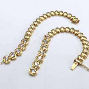 壊れてしまったブレスレットのダイヤを使って一文字のリングにリフォームです。普段使いの出来るアイテムはジュエリーとしてはとても重宝する逸品です。