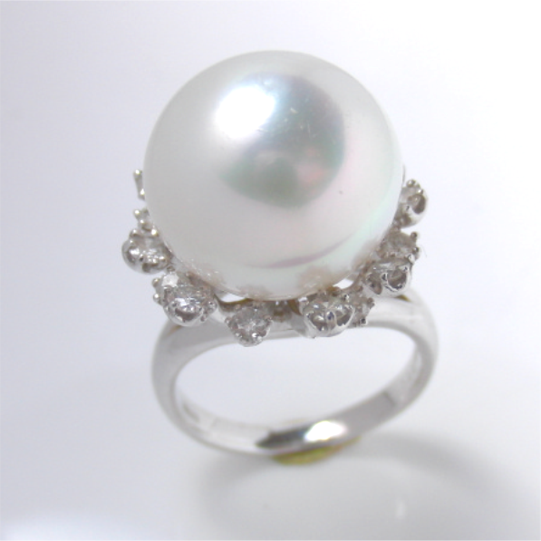 大粒の14ミリ南洋真珠リングをリフォーム。 豪華さの中に上品さを感じさせるオリジナルデザインでお作りいただきました。