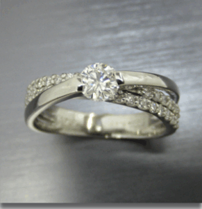 26年前の婚約リングを自らお直しのご要望でシンプルな2点留めの枠にリフォームいただきました。
