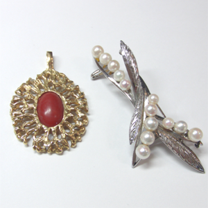 【実例24】サンゴのペンダントと真珠のブローチでオリジナルペンダントを