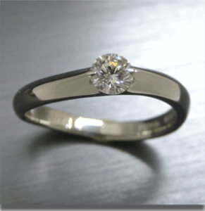 大切にお使いになられていた立爪のダイヤモンドリングをリフォームさせていただきました。ダイヤモンドそのものが最も主張され、本来持っている輝きを存分に発揮できるシンプルで飽きの来ないデザインリングです。 これからも素敵な時間と共に輝き続けるでしょう。