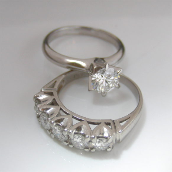 お手持ちの立て爪ダイヤリングと一文字リングを合わせて豪華な1本にリフォーム。