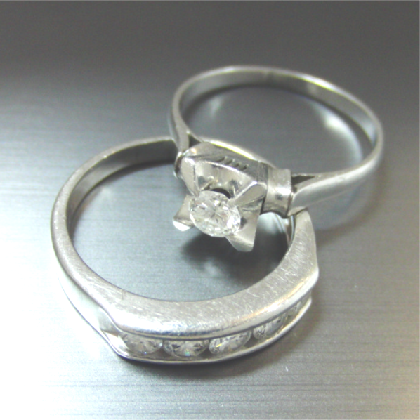 【実例318】立て爪リングと一文字リングから豪華なリングに