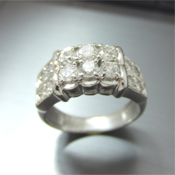メレーダイヤをたくさん使った豪華なデザインから日常使いの出来るシンプルストレートなリングにリフォームいただきました。