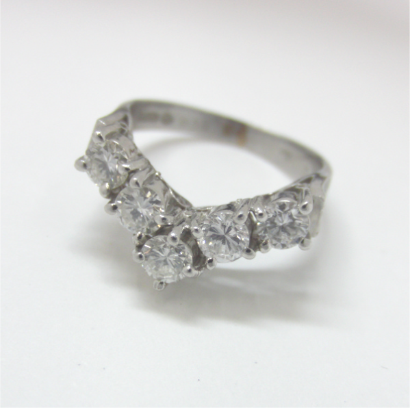 V字のダイヤモンドリング。デザインが古くなったことが理由でお着けにならなくなってしまったものをオリジナルのデザインでペンダントにリフォームいただきました。