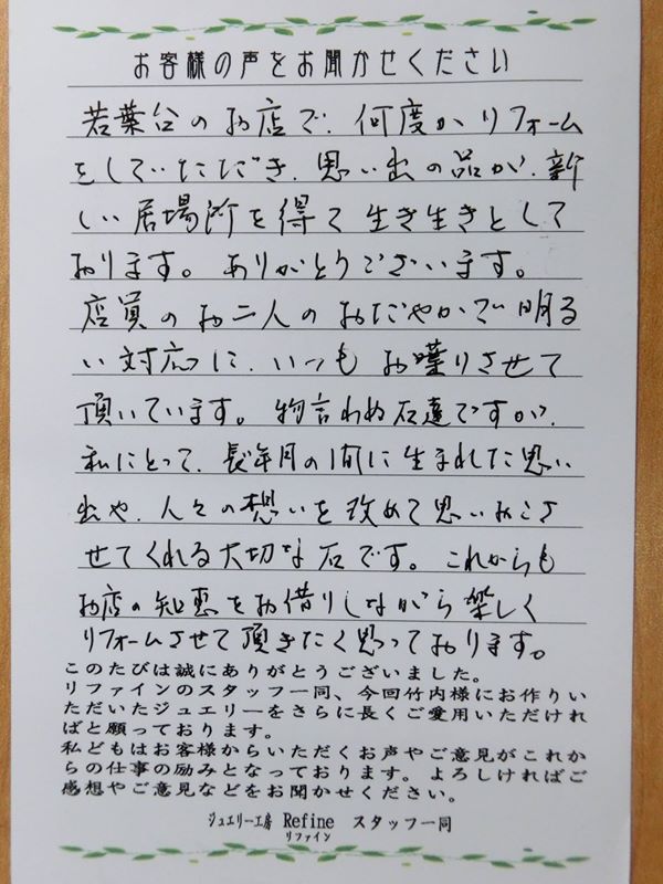 これからもお店の知恵をお借りしながら楽しくリフォームさせて頂きたく思っております。