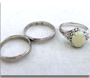 ご主人様とのペアリングと大切にお使いになられたオパールのリングを使って普段使いの出来るオリジナルデザインのリングをお作りいただきました。クロスに重なったダイヤモンドの光沢とマット仕上げの渋さがマッチした素敵なリングに変身しました